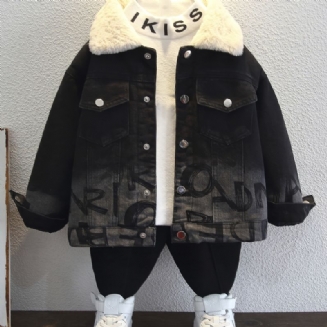 Chlapecká Ležérní Termo Džínová Bunda S Vyšívaným Písmenem Tygr Na Zimu
